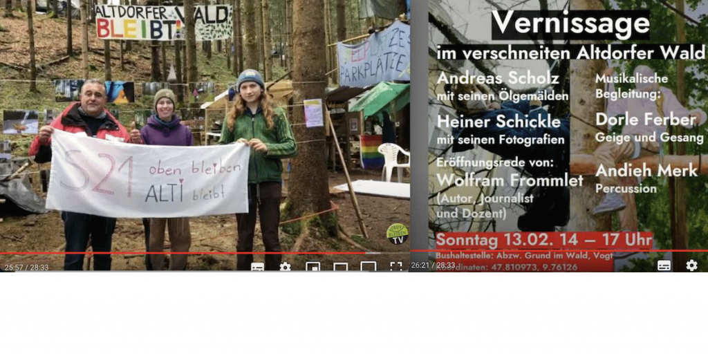 In Oberschwaben, im Landkreis Ravensburg kämpfen Aktivist*innen gegen eine weitere Waldrodung, mit dabei auch die Freund*innen, die das Banner auf dem Züblin-Kran in der Königstraße aufgehängt hatten. Diesmal geht es um einen großen Teil des Ökosystems Altdorferwald, der einer Kiesgrube zum Opfer fallen soll.
