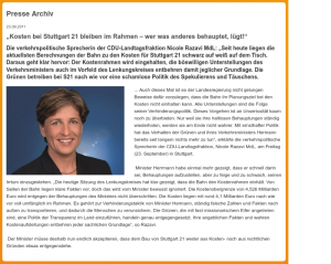 Diese Pressemeldung der charmanten Nicole Razavi, inzwischen wie Winne Hermann Minister*in bei Grün/Schwarz, gibts wohl nicht mehr auf ihrer Homepage. Aber das Internet vergisst ja nix und es gibt Sammler und Finder, wie den Twitterer und Radaktivisten