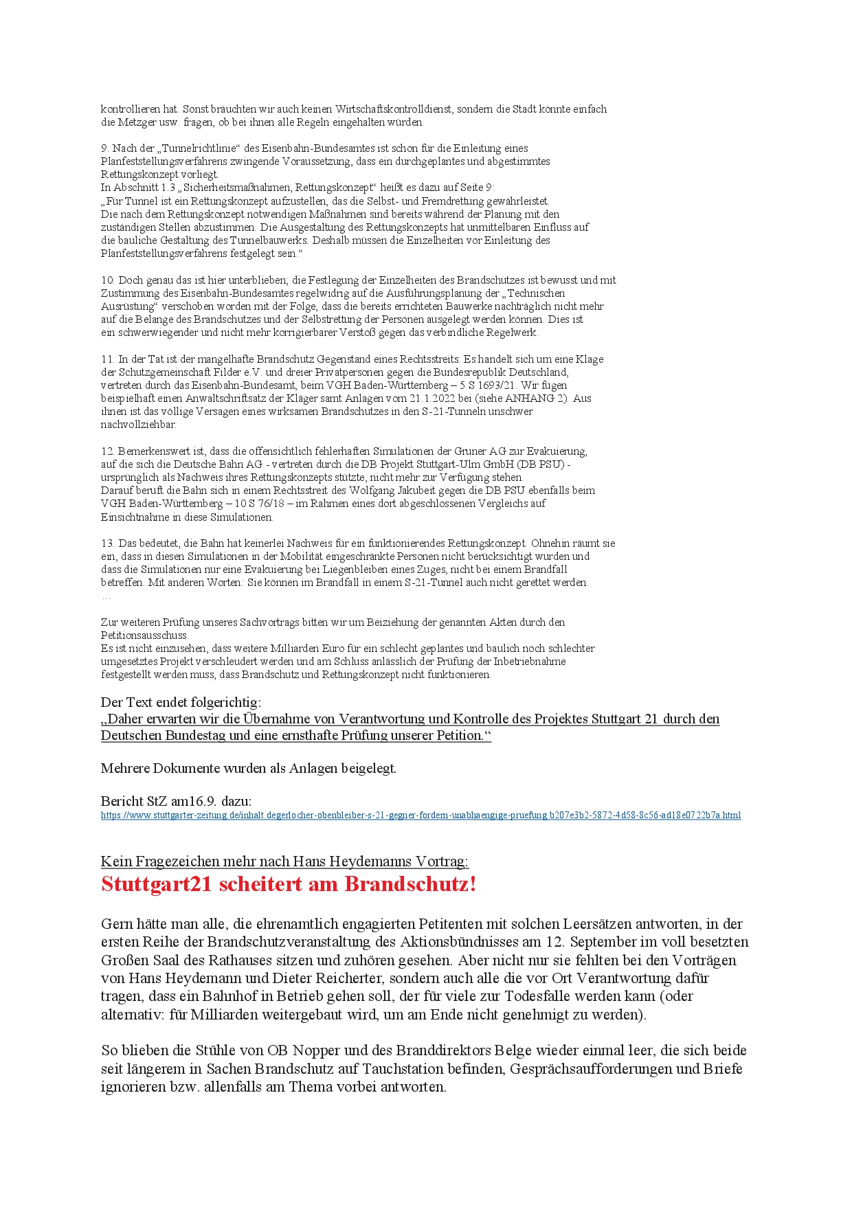• Veranstaltung im Rathaus: Stuttgart21 scheitert am Brandschutz!