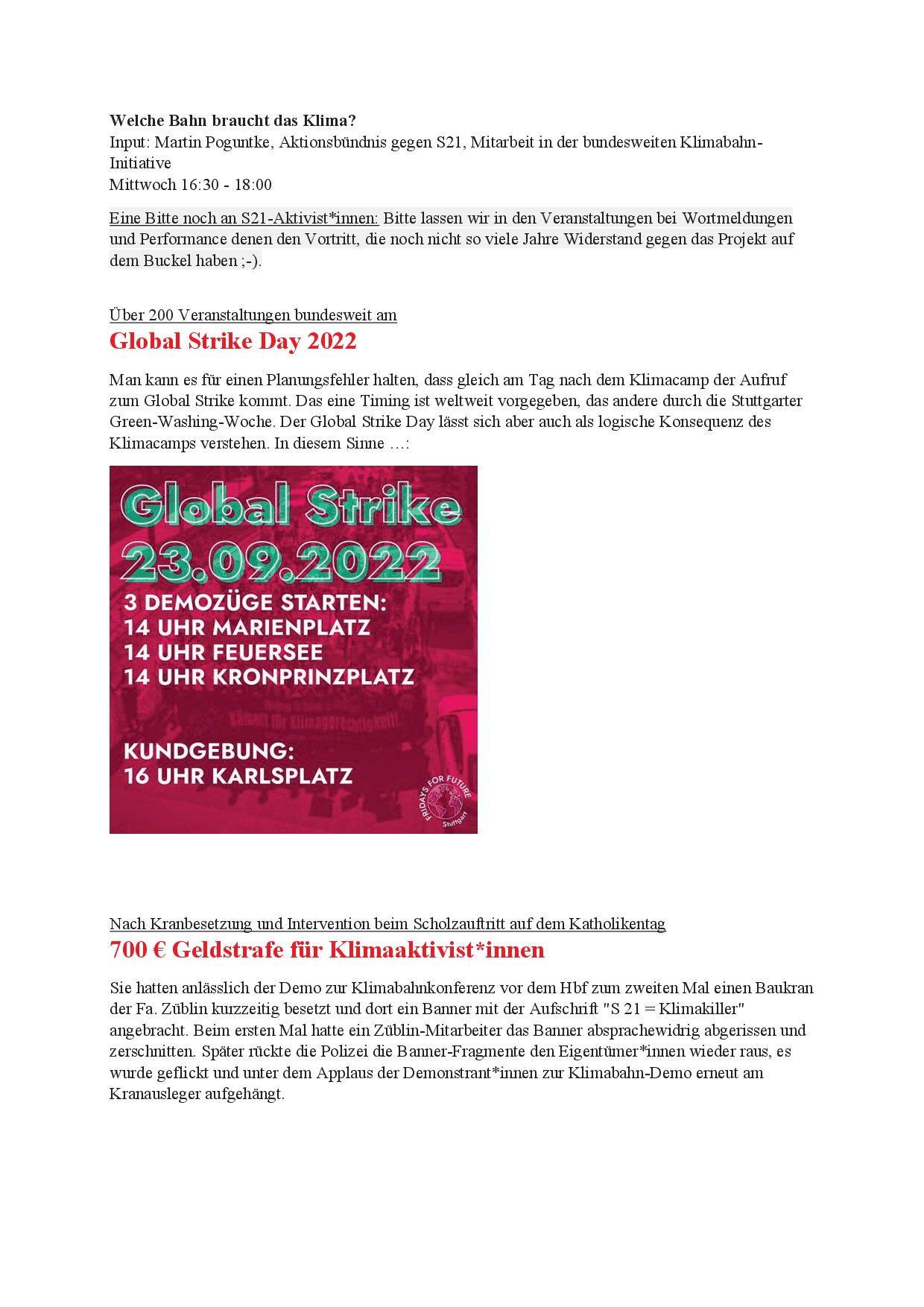 • Klimacamp statt Mobilitätswoche mit Greenwashing S21