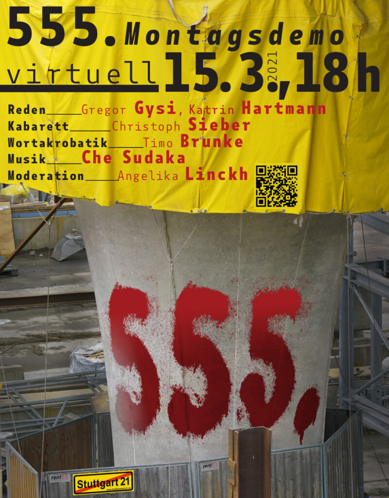 Die 555. Montagsdemo findet am 15. März 2021 nicht auf dem Marktplatz, sondern um 18 Uhr online statt. Die Kundgebung wird von OBEN BLEIBEN-TV gesendet und ist mit folgenden Links abzurufen: